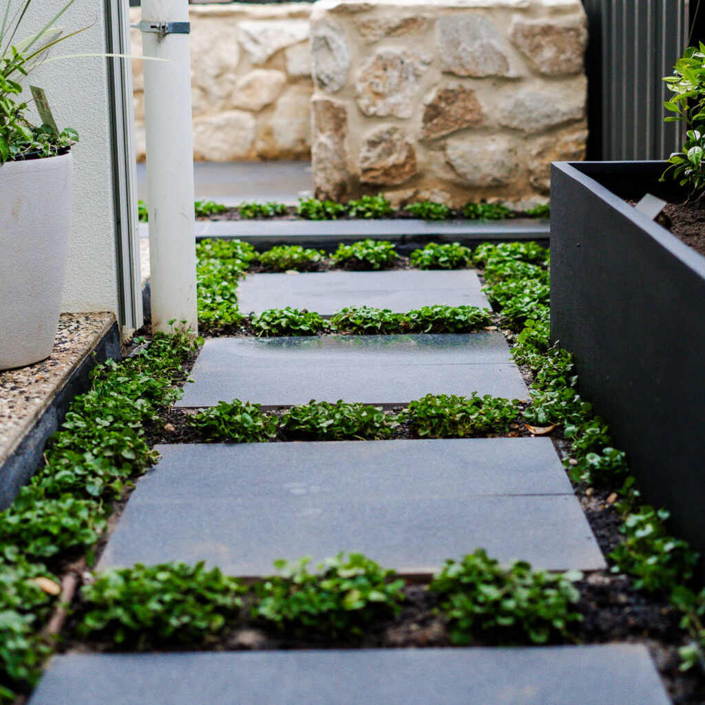 Using stepping stones through your grassed areas creates designated walkways and helps with areas in your lawn that get wet and muddy.